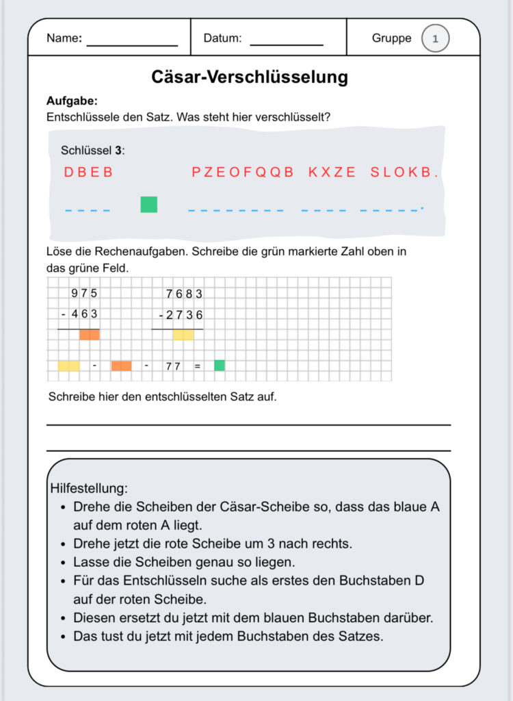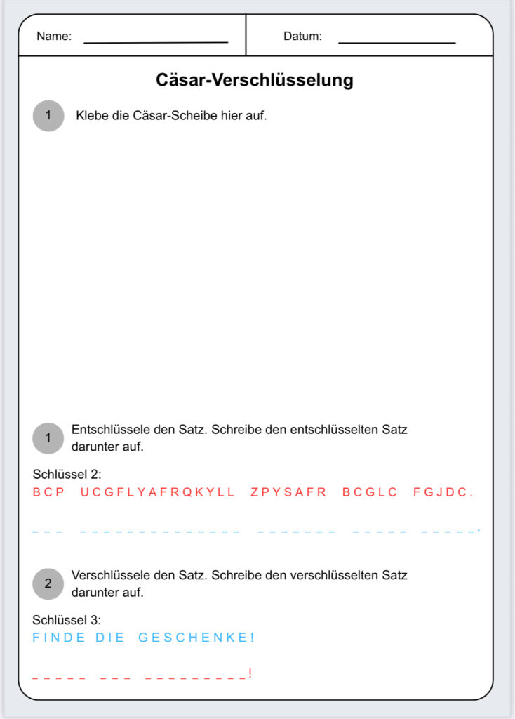 - Cäsar – Scheibe auf das Arbeitsblatt kleben -> vermeidet ungewolltes verschieben & Verwirrung